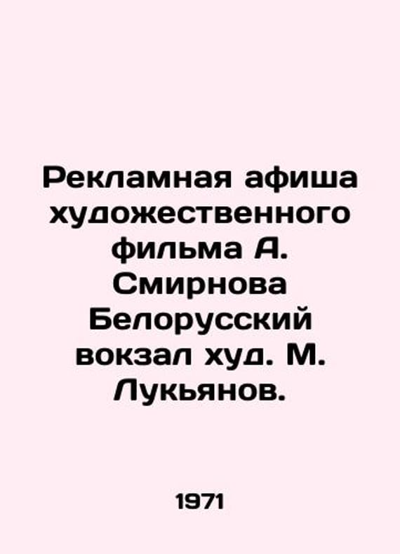Advertising poster for A. Smirnovs feature film Belorussky Railway Station by N. Khomov. Moscow: Advertising film, 19/Reklamnaya afisha khudozhestvennogo filma A. Smirnova Belorusskiy vokzal khud. N. Khomov. M.: Reklamfilm, 19 Advertising poster for A. Smirnovs feature film Belorussky Railway Station, directed by N. Khomov. Moscow: Advertising film, 1971. 65 - 42 sm.We have thousands of titles and often several copies of each title may be available. Please feel free to contact us for a detailed description of the copies available. The delivery of this book might be delayed beyond the usual timeframe due to extended processing and preparation before shipment, and faster shipping options are not offered. Please inform us if you need the order by a certain date or have a deadline.SKUbd-6175e46dd0fe56c1