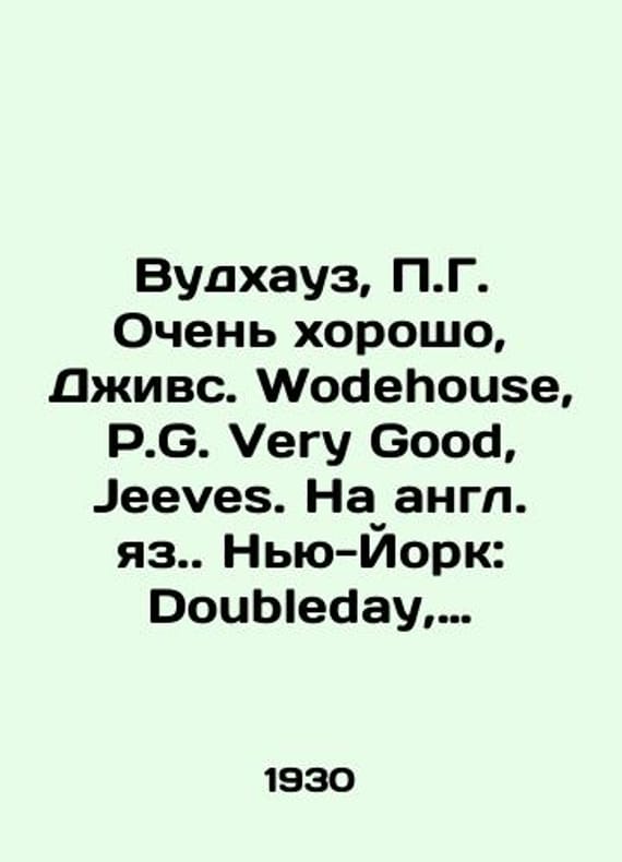 Wodehouse, G. Very good, Jeeves. Wodehouse, G. Very Good, Jeeves. New York: Doubleday, Doran & Co, 19/Vudkhauz, G. Ochen khorosho, Dzhivs. Wodehouse, G. Very Good, Jeeves. Na angl. yaz. Nyu-York: Doubleday, Doran & Co, 19 Wodehouse, G. Very good, Jeeves. Wodehouse, G. Very Good, Jeeves. New York: Doubleday, Doran & Co, 1930. 6, 340 p. 19 - 13.5 sm. We have thousands of titles and often several copies of each title may be available. Please feel free to contact us for a detailed description of the copies available. SKUbd-2eba96d743f3a440.