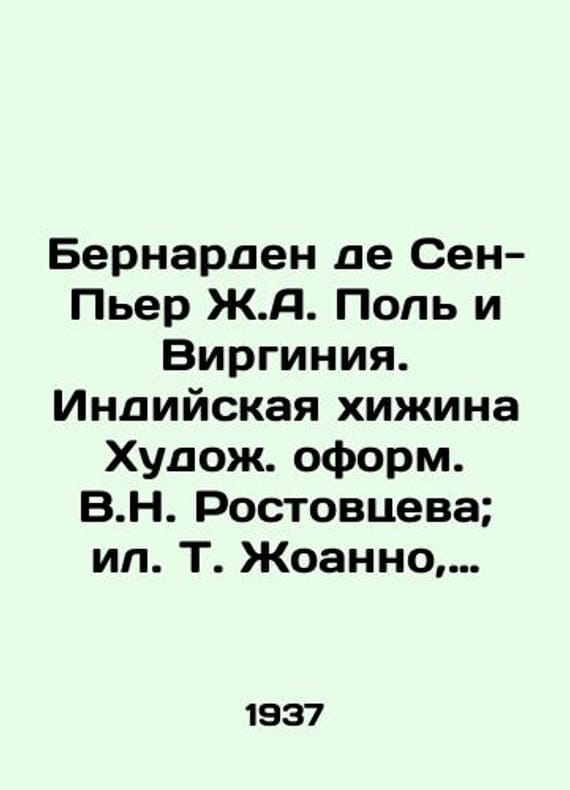 "Bernard de Saint-Pierre J.A. Paul and Virginia. Indian hut, designed by V.N. Rostovtsev; il. T. Joinneau, Meissonnier, Gue, Isabe et al./Bernarden de Sen-Per Zh.A. Pol i Virginiya. Indiyskaya khizhina Khudozh. oform. V.N. Rostovtseva; il. T. Zhoanno, Meyssone, Gyue, Izabe i dr. Bernard de Saint-Pierre J.A. Paul and Virginia. Indian hut, designed by V.N. Rostovtsev; il. T. Joannot, Meissonnier, Gue, Isabe et al. M.; L.: Academia, 1937. 237, 2 We have thousands of titles and often several copies of each title may be available. Please feel free to contact us for a detailed description of the copies available. SKUbd-2f2b4a5fa15b74e6."