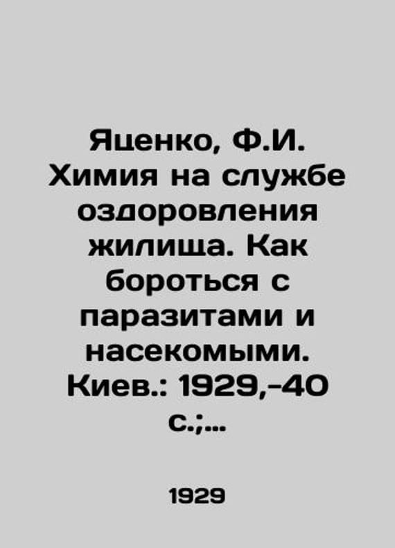 "Yatsenko, F.I. Chemistry in the service of home improvement. How to fight parasites and insects. Kyiv. 1929, -40 p.; 17x12 sm./Yatsenko, F.I. Khimiya na sluzhbe ozdorovleniya zhilishcha. Kak borotsya s parazitami i nasekomymi. Kiev.: 1929,-40 s.; 17x12 sm. Yatsenko, F.I. Chemistry in the service of home improvement. How to fight parasites and insects. Kyiv.: 1929, -40.We have thousands of titles and often several copies of each title may be available. Please feel free to contact us for a detailed description of the copies available. SKUbd-18509ed17c4894ae."