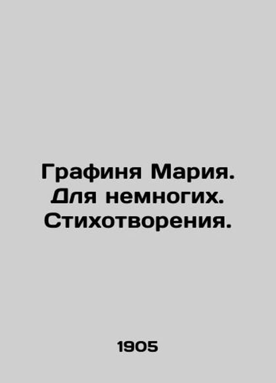 Countess Maria. For a few. Poems./Grafinya Mariya. Dlya nemnogikh. Stikhotvoreniya. From Countess Maria, Chairman of the Council of the Union of Russian Women. For a Few. Poems. St. Petersburg: Type I. V. Leontieva, 1905. 4, 70, 2 p. 17 - 13,4 sm. We have thousands of titles and often several copies of each title may be available. Please feel free to contact us for a detailed description of the copies available. SKUbd-2f4b7f4f1f86a55a.