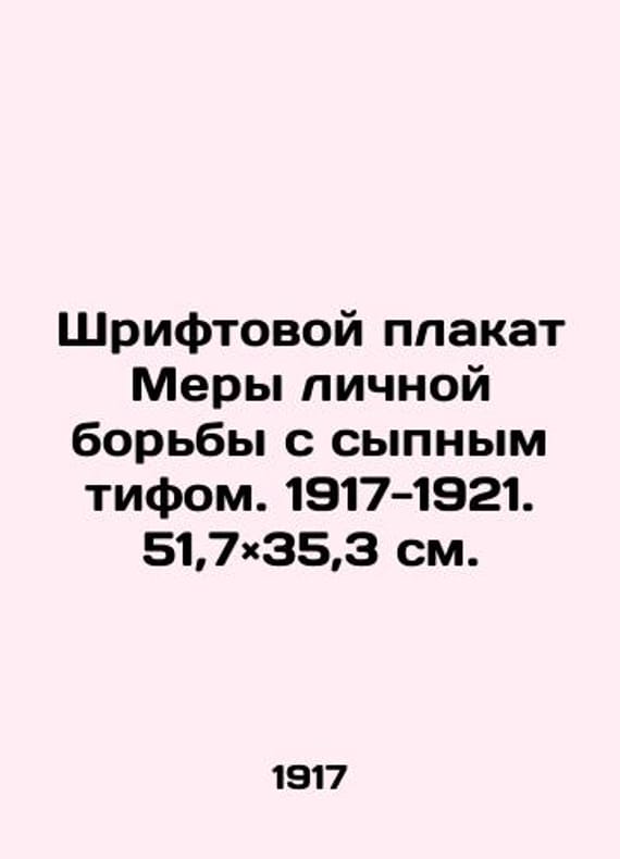 Poster Measures for personal control of typhoid fever. 1917-1921. 51.7 - 35.3 sm./Shriftovoy plakat Mery lichnoy borby s sypnym tifom. 1917-1921. 51,7-35,3 sm. Poster Measures for the personal control of typhoid fever. 1917-1921. We have thousands of titles and often several copies of each title may be available. Please feel free to contact us for a detailed description of the copies available. SKUbd-2f6a65074274eee4.