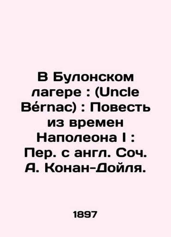 "In the Camp of Boulogne: (Uncle Bernac): A Tale from the Time of Napoleon I: A Translation from the English Conan-Doyle./V Bulonskom lagere: (Uncle Bernac): Povest iz vremen Napoleona I: Per. s angl. Soch. A. Konan-Doylya. In the Camp of Boulogne: (Uncle Bernac): A Tale from the Time of Napoleon I: Translated from English by A. Conan-Doyle.-St. Petersburg: type. A.S. Suvorin, 1897.-100 p.;.We have thousands of titles and often several copies of each title may be available. Please feel free to contact us for a detailed description of the copies available. SKUbd-2f6fa17aa84eca0a."