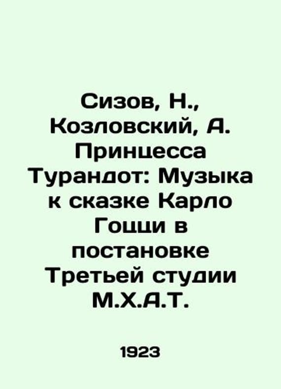 "Sizov, N., Kozlovsky, A. Princess Turandot: Music to Carlo Gozzis Tale, staged by the Third Studio of M.H.A.T./Sizov, N., Kozlovskiy, A. Printsessa Turandot: Muzyka k skazke Karlo Gotstsi v postanovke Tretey studii M.Kh.A.T. M.-: State Music Sector, 1923 (Tchaikovsky Notebook) -4, 21 p.: sheet music; 35x26,5 sm. We have thousands of titles and often several copies of each title may be available. Please feel free to contact us for a detailed description of the copies available. SKUbd-3024d489bd058c53."