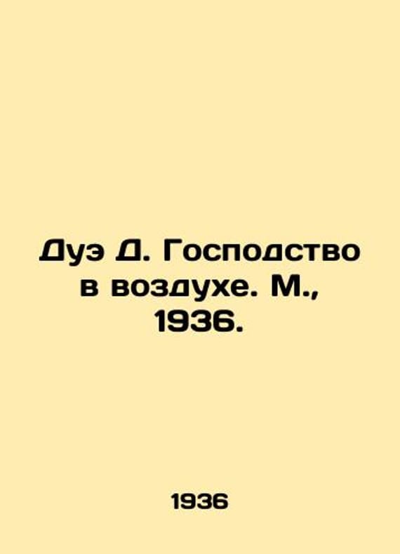 Duet D. Domination in the air. Moscow, 1936./Due D. Gospodstvo v vozdukhe. M., 1936. Doue D. Dominance in the Air. A collection of works on air warfare. Translated from Italian by V.A. Winograd. Prescribed by V.V. Khripin. 2nd edition. Moscow: edition and type 1. State Military Publishing House, 1936.We have thousands of titles and often several copies of each title may be available. Please feel free to contact us for a detailed description of the copies available. The delivery of this book might be delayed beyond the usual timeframe due to extended processing and preparation before shipment, and faster shipping options are not offered. Please inform us if you need the order by a certain date or have a deadline.SKUbd-308174acd98aa572