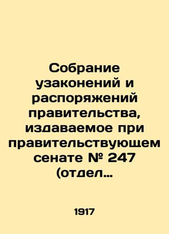 Assembly of Laws and Orders of the Government issued by the Government Senate # 247 (Division One) on October 6, 1917/Sobranie uzakoneniy i rasporyazheniy pravitelstva, izdavaemoe pri pravitelstvuyushchem senate # 247 (otdel pervyy) za 6 oktyabrya 1917 g. Assembly of Laws and Orders of the Government issued by the Government Senate # 247 (Division One) on October 6, 1917.We have thousands of titles and often several copies of each title may be available. Please feel free to contact us for a detailed description of the copies available. SKUbd-30a826eb5f92d57c.