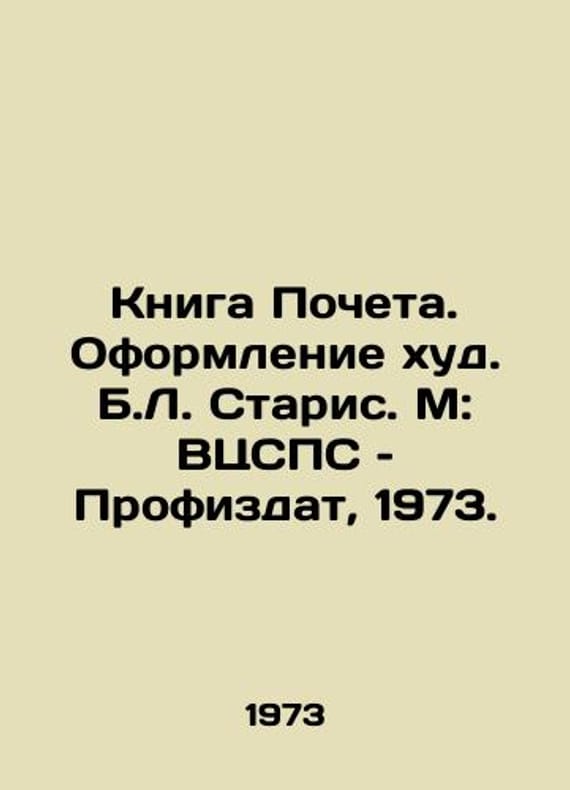 The Book of Honor. Decorating is bad. B.L. Staris. M: ACSPC, Professionals, 1973./Kniga Pocheta. Oformlenie khud. B.L. Staris. M: VTsSPS Profizdat, 1973. The Book of Honor. Decorating by B.L. Staris. M: ACSPC, Prof. 1973. 146s. We have thousands of titles and often several copies of each title may be available. Please feel free to contact us for a detailed description of the copies available. SKUbd-30dc503d1ea05a45.