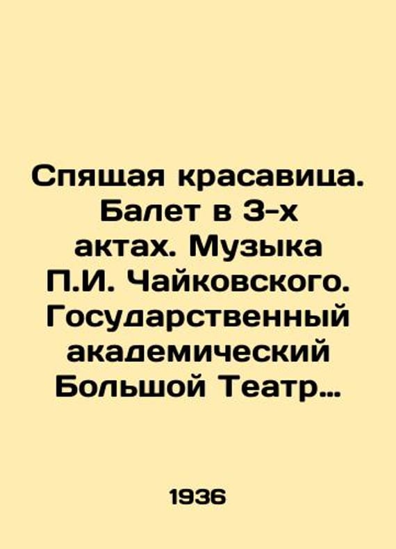 The Sleeping Beauty. Ballet in 3 Acts. Music by g. Tchaikovsky. State Academic Bolshoi Theatre of the USSR. Moscow 1936. 41 (3) p./Spyashchaya krasavitsa. Balet v 3-kh aktakh. Muzyka g. Chaykovskogo. Gosudarstvennyy akademicheskiy Bolshoy Teatr Soyuza SSSR. M.1936. 41(3)s. The Sleeping Beauty. Ballet in 3 Acts. Music by g. Tchaikovsky. State Academic Bolshoi Theatre of the USSR. Moscow 1936. 41 (3) p. 22x15 sm. We have thousands of titles and often several copies of each title may be available. Please feel free to contact us for a detailed description of the copies available. SKUbd-311524d633615c0d.