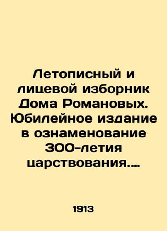The Chronicles and Faces of the House of Romanov. Jubilee Edition to mark the 300th Anniversary of the reign. 1613-1913/Letopisnyy i litsevoy izbornik Doma Romanovykh. Yubileynoe izdanie v oznamenovanie 300-letiya tsarstvovaniya. 1613-1913. V 2 vyp. Vyp. 2. The Chronicles and Faces of the House of Romanov. Jubilee Edition to Celebrate the 300th Anniversary of the Reign. 1613-1913. SKUbd-328e50f23345b90e.We have thousands of titles and often several copies of each title may be available. Please feel free to contact us for a detailed description of the copies available. The delivery of this book might be delayed beyond the usual time due to extended processing and preparation before shipment, and faster shipping options are not offered. Please inform us if you need the order by a certain date or have a deadline.SKUbd-328e50f23345b90e
