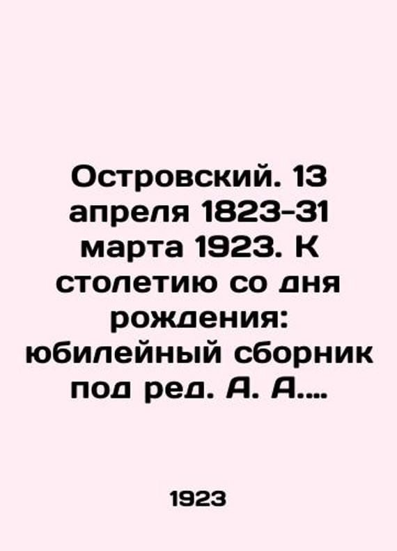 Ostrovsky. April 13, 1823-March 31, 1923. To the Centennial of Birth: A Jubilee Compilation edited by A. A. Bakhrushin, N. L. Brodsky, and N. A. Popov./Ostrovskiy. 13 aprelya 1823-31 marta 1923. K stoletiyu so dnya rozhdeniya: yubileynyy sbornik pod red. A. A. Bakhrushina, N. L. Brodskogo i N. A. Popova.-Moskva: Izd-vo Russkogo teatralnogo o-va, 1923.-74 s.: Ostrovsky. April 13, 1823-March 31, 1923. To the Centennial of Birth: A Jubilee Compilation edited by A. A. Bakhrushin, N. L. Brodsky, and N. A. Popov. We have thousands of titles and often several copies of each title may be available. Please feel free to contact us for a detailed description of the copies available. SKUbd-32c29fdd62ead61b.