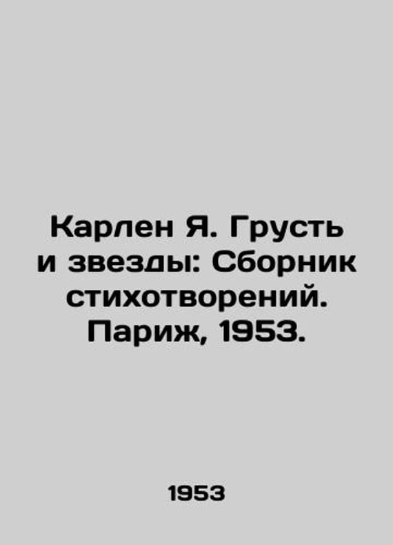 "Carlin Y. Sadness and the Stars: A collection of poems. Paris, 1953./Karlen Ya. Grust i zvezdy: Sbornik stikhotvoreniy. Parizh, 1953. Paris: Type Navarre, 1953. 126, 1p.; 18.5x11.5sm. We have thousands of titles and often several copies of each title may be available. Please feel free to contact us for a detailed description of the copies available. SKUbd-35793272e8380c54."