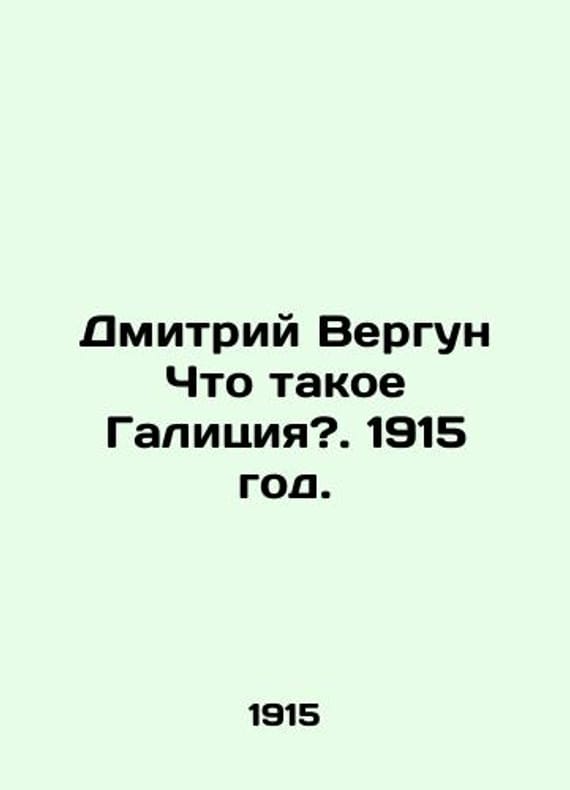 Dmitry Vergun What is Galicia?. 1915./Dmitriy Vergun Chto takoe Galitsiya?. 1915 god. Dmitry Nikolaevich Vergun (1871-1951) is a Galician-Russian Panslavist, public figure, philologist, journalist, publicist, and poet. Born in Galicia, Austria, he graduated from a German school in Lviv. After studying Russian, he prepared the Chervonno-Russian Youth Program, for which he was imprisoned in an Austrian prison. We have thousands of titles and often several copies of each title may be available. Please feel free to contact us for a detailed description of the copies available. SKUbd-35d41396a8095a98.