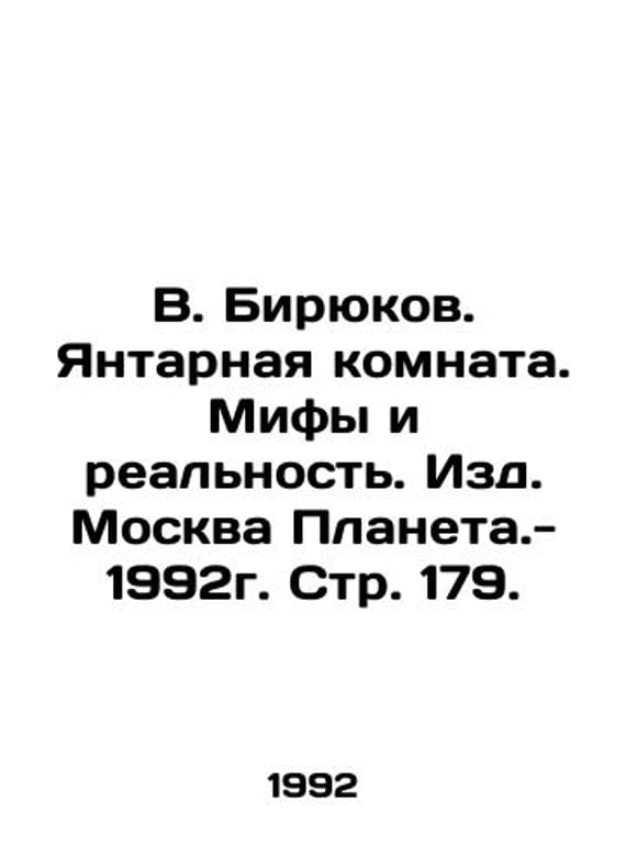 V. Biryukov. The Amber Room. Myths and Reality. Moscow Planeta.- 1992. Page 179./V. Biryukov. Yantarnaya komnata. Mify i realnost. Izd. Moskva Planeta.- 1992g. Str. 179. V. Biryukov. The Amber Room. Myths and Reality. Moscow Planeta.- 1992. Page 179. We have thousands of titles and often several copies of each title may be available. Please feel free to contact us for a detailed description of the copies available. SKUbd-3699fc2848aaa19c.