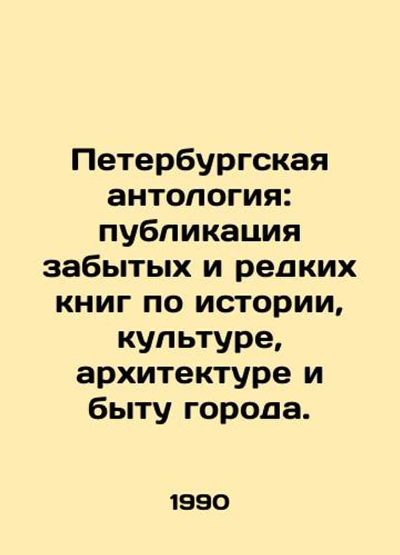 St. Petersburg anthology: publication of forgotten and rare books on the history, culture, architecture and everyday life of the city./Peterburgskaya antologiya: publikatsiya zabytykh i redkikh knig po istorii, kulture, arkhitekture i bytu goroda. St. Petersburg anthology: publication of forgotten and rare books on city history, culture, architecture and everyday life. Leningrad: Candle, Partnership, 1990.-144p. We have thousands of titles and often several copies of each title may be available. Please feel free to contact us for a detailed description of the copies available. SKUbd-370f5a86a072f6a9.
