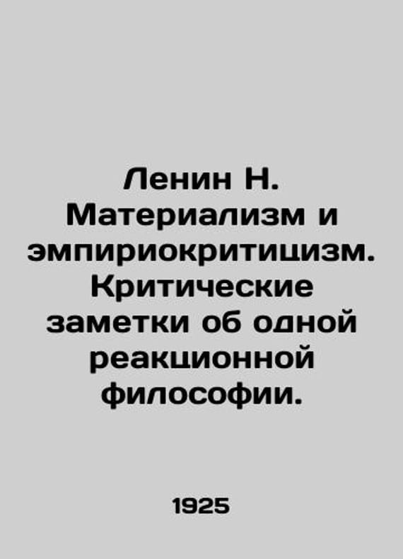 Lenin N. Materialism and Empiricism. Critical Notes on a Reactionary Philosophy./Lenin N. Materializm i empiriokrititsizm. Kriticheskie zametki ob odnoy reaktsionnoy filosofii. Leningrad State Publishing House 1925. 306We have thousands of titles and often several copies of each title may be available. Please feel free to contact us for a detailed description of the copies available. SKUbd-373d75d0d9c4a1fb.