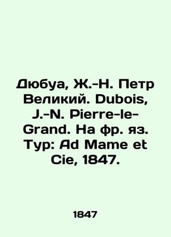 Dubois, J.-N. Peter the Great. Dubois, J.-N. Pierre-le-Grand. In French. Tour: Ad Mame et Cie, 1847./Dyubua, Zh.-N. Petr Velikiy. Dubois, J.-N. Pierre-le-Grand. Na fr. yaz. Tur: Ad Mame et Cie, 1847. Dubois, J.-N. Peter the Great. Dubois, J.-N. Pierre-le-Grand. In French. Tour: Ad Mame et Cie, 1847. We have thousands of titles and often several copies of each title may be available. Please feel free to contact us for a detailed description of the copies available. SKUbd-37aa7ecf8b95ff29.