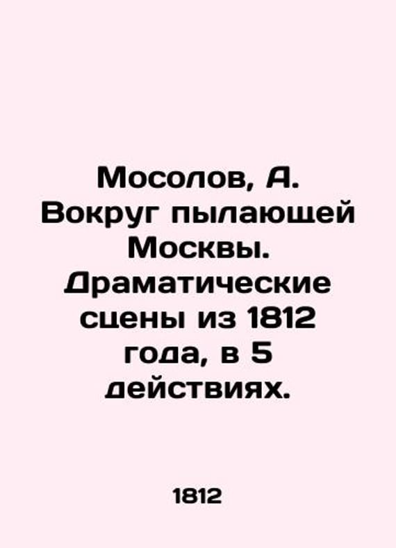 Mosolov, A. Around blazing Moscow. Dramatic scenes from 1812, in 5 acts./Mosolov, A. Vokrug pylayushchey Moskvy. Dramaticheskie stseny iz 1812 goda, v 5 deystviyakh. Mosolov, A. Around blazing Moscow. Dramatic scenes from 1812, in 5 acts. St. Petersburg: Typography by A.S. Suvorin, 1900. We have thousands of titles and often several copies of each title may be available. Please feel free to contact us for a detailed description of the copies available. SKUbd-38145d43c09ddc2e.