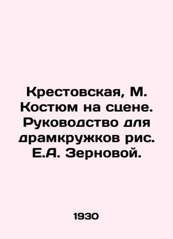 Krestovskaya, M. Suit on the stage. Drawing guide for drama circles by E.A. Zernova./Krestovskaya, M. Kostyum na stsene. Rukovodstvo dlya dramkruzhkov ris. E.A. Zernovoy. Krestovskaya, M. Suit on the stage. Drawing guide for drama circles by E.A. Zernova. We have thousands of titles and often several copies of each title may be available. Please feel free to contact us for a detailed description of the copies available. The delivery of this book might be delayed beyond the usual timeframe due to extended processing and preparation before shipment, and faster shipping options are not offered. Please inform us if you need the order by a certain date or have a deadline.SKUbd-39c1af8667baeaab