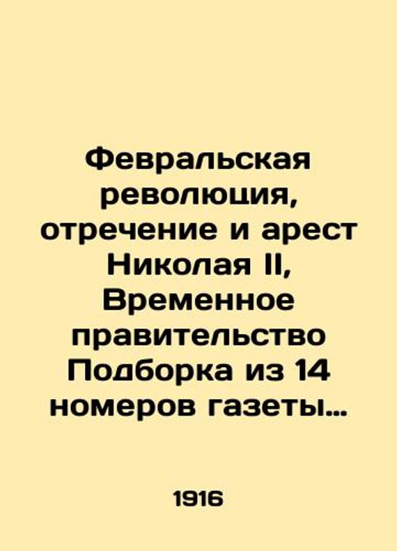 "February Revolution, Abdication and Arrest of Nicholas II, Provisional Government A selection of 14 issues of the newspaper Russkoye Slovo edited by N.A. Astapov. # 18, 23 January 1916; # 48, 50, 53, 55-63 and Urgent addendum to # 57, 2-19 March 1917./Fevralskaya revolyutsiya, otrechenie i arest Nikolaya II, Vremennoe pravitelstvo Podborka iz 14 nomerov gazety Russkoe slovo red. N.A. Astapov. # 18, 23 yanvarya 1916; # 48, 50, 53, 55-63 i Ekstrennoe pribavlenie k # 57, 2-19 marta 1917. February Revolution, Abdication and Arrest of Nikolai II, Provisional Government Selection of 14 issues of the newspaper Russkoye Slovo edited by N.A. Astapov. # 18, January 23, 1916; # 48, 50, 53, 55-63 and Urgent Addendum to # 57, March 2-19, 1917. We have thousands of titles and often several copies of each title may be available. Please feel free to contact us for a detailed description of the copies available. SKUbd-3a48a8469ab9be07."