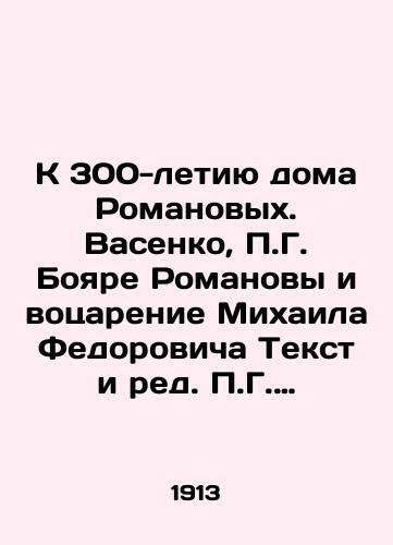 To the 300th Anniversary of the House of Romanov. Vasenko, G. Boyare Romanov and the Emperor of Mikhail Fedorovich Text and Editor G. Vasenko./K 300-letiyu doma Romanovykh. Vasenko, G. Boyare Romanovy i votsarenie Mikhaila Fedorovicha Tekst i red. G. Vasenko. To the 300th Anniversary of the House of Romanov. Vasenko, G. Boyare Romanov and the Emperor of Mikhail Fedorovich Text and Edited by G. Vasenko-St. Petersburg: A Comment for the Arrangement of the Celebration of the 300th Anniversary of the Reign of the House of Romanov, 1913.-224, XII, 1 We have thousands of titles and often several copies of each title may be available. Please feel free to contact us for a detailed description of the copies available. SKUbd-3a899fff66d4bf7b.