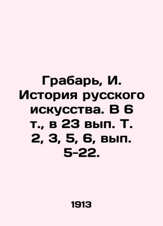 Grabar, I. History of Russian Art. Volume 6, Vol.23, Vol.2, 3, 5, 6, Vol.5-22./Grabar, I. Istoriya russkogo iskusstva. V 6 t., v 23 vyp. T. 2, 3, 5, 6, vyp. 5-22. Vol.1, Vol.1-4: History of Architecture. Pre-Petrovsky Epoch. 6, 508, 6 p., 4 liters. Vol.2, Vol.5-8: History of Architecture. pre-Petrovsky Epoch. (Moscow and Ukraine). 478 p., 3 liters. Vol.3, Vol.13-17: History of Architecture. St. Petersburg architecture in the 18th and 19th centuries. 583, 1 p., 4 lit. Vol.5, Vol.9-12: Wrangel, N. History of Sculpture. 416 p., 3 lit. Vol.6, Vol.18-22: History of Painting. We have thousands of titles and often several copies of each title may be available. Please feel free to contact us for a detailed description of the copies available. SKUbd-3b5ae7ee90f5a49c.