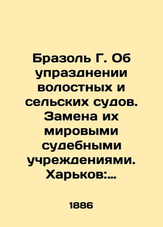 Brazol G. On the abolition of peasant and village courts. Replacement by magistrates courts. Kharkiv: Typography by M.F. Zilberberg, 1886. /Brazol G. Ob uprazdnenii volostnykh i selskikh sudov. Zamena ikh mirovymi sudebnymi uchrezhdeniyami. Kharkov: Tipografiya M.F.Zilberberga, 1886. Brazol G. On the abolition of peasant and village courts. Replacement by magistrates courts. Kharkiv: Typography by M.F. Zilberberg, 1886. We have thousands of titles and often several copies of each title may be available. Please feel free to contact us for a detailed description of the copies available. SKUbd-3c353118276b0c75.