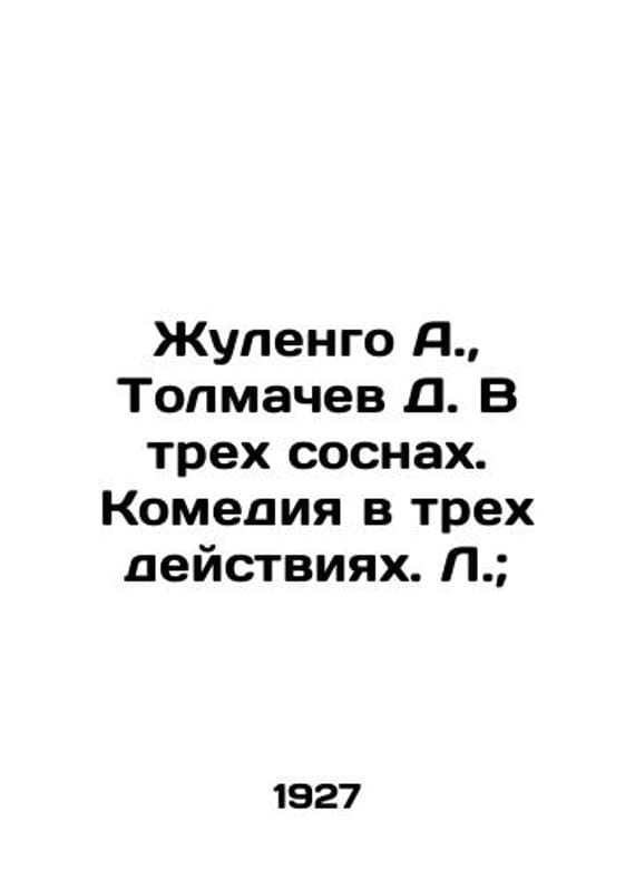 "Zhulengo A., Tolmachev D. In Three Pines. Comedy in Three Acts. L.;/Zhulengo A., Tolmachev D. V trekh sosnakh. Komediya v trekh deystviyakh. L.; Zhulengo A., Tolmachev D. In Three Pines. Comedy in Three Acts. Leningrad; Moscow: Publishing House of MODP and K, 1927. 41, 1 We have thousands of titles and often several copies of each title may be available. Please feel free to contact us for a detailed description of the copies available. SKUbd-3c5e33b89e4ec4f3."