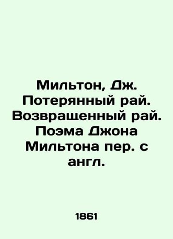 Milton, J. Paradise Lost. Paradise Returned. John Miltons Poe/Milton, Dzh. Poteryannyy ray. Vozvrashchennyy ray. Poema Dzhona Miltona per. s angl. Milton, J. Paradise Lost. Paradise Returned. John Miltons Poem Translated from English: In the University Printing House, 1861. We have thousands of titles and often several copies of each title may be available. Please feel free to contact us for a detailed description of the copies available. SKUbd-3da0cf4f5087d0a9.
