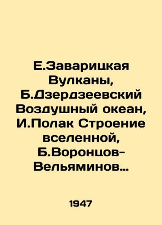 E.Zavaritskaya Volcanoes, B.Dzerdzeevsky Air Ocean, I.Polak The Structure of the Universe, B.Vorontsov-Velyaminov The Origin of Celestial Bodies/E.Zavaritskaya Vulkany, B.Dzerdzeevskiy Vozdushnyy okean, I.Polak Stroenie vselennoy, B.Vorontsov-Velyaminov Proiskhozhdenie nebesnykh tel OGIZ Moscow-Leningrad 1947, Military Publishing House of the Ministry of Armed Forces of the USSR Moscow 1947. We have thousands of titles and often several copies of each title may be available. Please feel free to contact us for a detailed description of the copies available. SKUbd-3efe32e5c91c15a.