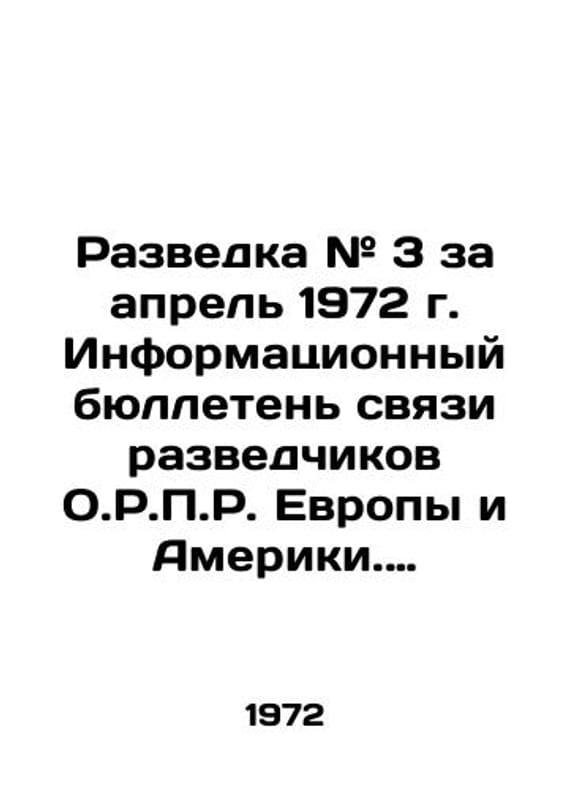 "Intelligence # 3 for April 1972. Information bulletin on the communication of intelligence officers from Europe and America. European edition. 1972-30 p., il.; 27x21 sm./Razvedka # 3 za aprel 1972 g. Informatsionnyy byulleten svyazi razvedchikov O.R.R. Evropy i Ameriki. Evropeyskoe izdanie. 1972.-30 s., il.; 27x21 sm. Intelligence # 3 for April 1972. Information Bulletin on the Communication of Intelligence Officers of the O.R.R. of Europe and America. European Edition. 1972-30 p.We have thousands of titles and often several copies of each title may be available. Please feel free to contact us for a detailed description of the copies available. SKUbd-3f2396f3b70d0616."