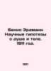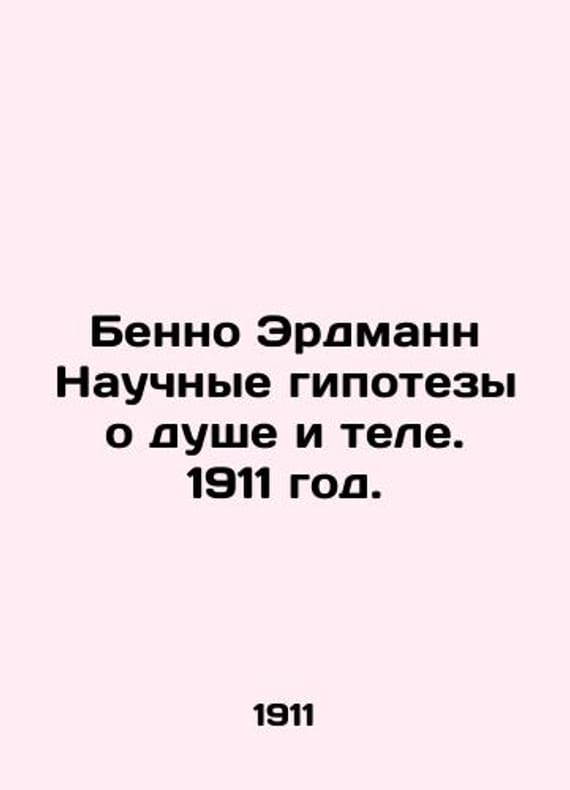 Benno Erdmann Scientific Hypotheses on the Body and Soul. 1911./Benno Erdmann Nauchnye gipotezy o dushe i tele. 1911 god. The book contains lectures by the German philosopher Erdmann on the spiritual and psychophysical process of cognition of body and soul. In matters of the relationship between soul and body, Erdmann is a representative of so-called psychophysical parallelism. This view views mental and physical phenomena as two sides of the same reality, taken from two perspectives. We have thousands of titles and often several copies of each title may be available. Please feel free to contact us for a detailed description of the copies available. SKUbd-3f7d685725b705ef.