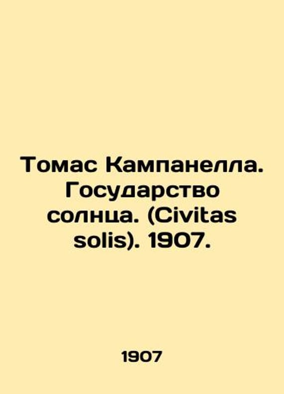 Thomas Campanella. The State of the Sun. (Civitas solis). 1907./Tomas Kampanella. Gosudarstvo solntsa. (Civitas solis). 1907. Campanella Tommaso (1568-1639). The State of the Sun. (Civitas solis). With a portrait of T. Campanella (PORTRET UTRACEN).We have thousands of titles and often several copies of each title may be available. Please feel free to contact us for a detailed description of the copies available. SKUbd-b3c2d5d81bf2cb78.