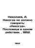 Nikolaev, A. should never say: Never. The proverb in one act, 1852./Nikolaev, A. Nikogda ne dolzhno govorit: «Nikogda. Poslovitsa v odnom deystvii., 1852 Nikolaev, A. should never say: Never. The proverb in one act, 1852. We have thousands of titles and often several copies of each title may be available. Please feel free to contact us for a detailed description of the copies available. SKUbd-4071722e19c0e77e.