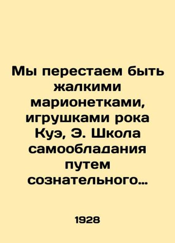 "We cease to be pitiful puppets, toys of Cues rock, E. School of Composure by Conscious (Deliberate) Self-Inspiration. Edited by I. D. Ermakov, translated from A. Semichovs French. Nizhny Novgorod: House of Health Education of Nizhny Gubzdrav; Type. Nizhny Polygraph, 19 /My perestaem byt zhalkimi marionetkami, igrushkami roka Kue, E. Shkola samoobladaniya putem soznatelnogo (prednamerennogo) samovnusheniya pred. i red. I.D. Ermakova, per. s posl. fr. izd. A. Semichova. Nizhniy Novgorod: Dom sanitarnogo prosveshcheniya Nizhgubzdrava; Tip. Nizhpoligraf, 19 We cease to be pitiful puppets, toys of Cues rock, E. School of self-control by conscious (deliberate) self-indoctrination. Edited by I. D. Ermakov, translated from A. Semichovs French. Nizhny Novgorod: House of Health Education of Nizhny Gubzdrav, Nizhny Polygraph, 1928. 1 l. We have thousands of titles and often several copies of each title may be available. Please feel free to contact us for a detailed description of the copies available. The delivery of this book might be delayed beyond the usual timeframe due to extended processing and preparation before shipment, and faster shipping options are not offered. Please inform us if you need the order by a certain date or have a deadline.SKUbd-419a6e4fa303644a"