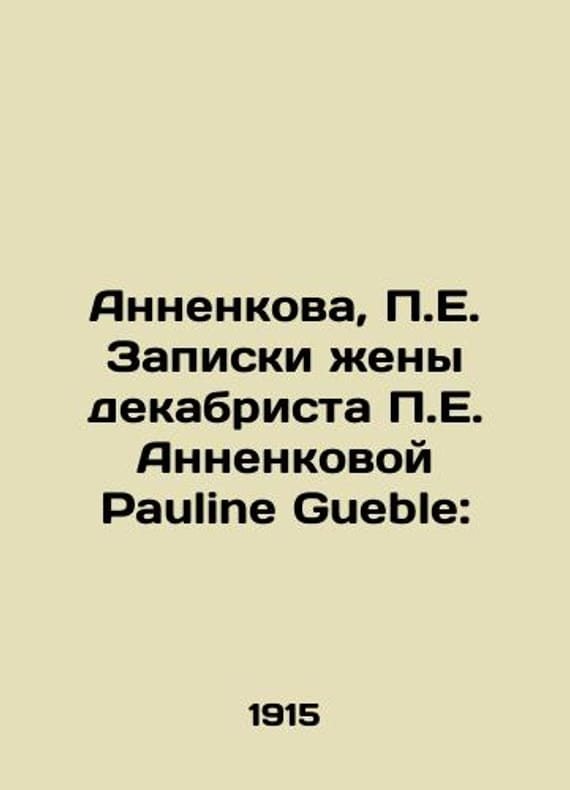 Annenkova, E. Notes by the wife of Decembrist E. Annenkova Pauline Gueble:/Annenkova, E. Zapiski zheny dekabrista E. Annenkovoy Pauline Gueble: Annenkova, E. Notes by the Decembrists wife, Pauline Gueble: Pg.: Prometheus, 1915.-4, 166 p.:. We have thousands of titles and often several copies of each title may be available. Please feel free to contact us for a detailed description of the copies available. SKUbd-419fc8612f7959.