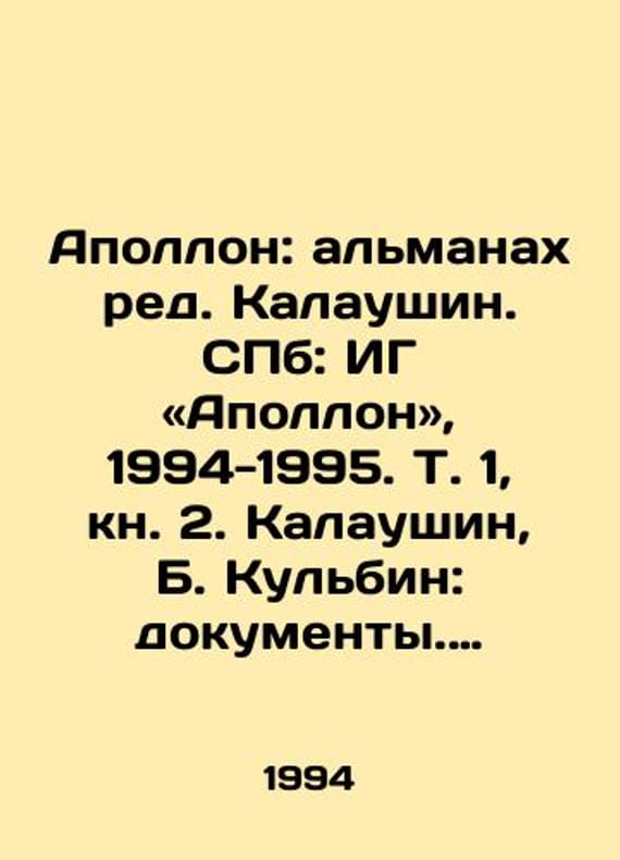 Apollo: Kalaushins Almanac. St. Petersburg: ISIS Apollo, 1994-1995. Vol. 1, Book 2. Kalaushin, B. Kulbin: documents. 558 p., /Apollon: almanakh red. Kalaushin. SPb: IG «Apollon, 1994-1995. T. 1, kn. 2. Kalaushin, B. Kulbin: dokumenty. 558 s., Apollo: Kalaushins Almanac. St. Petersburg: IG Apollo, 1994-1995. Vol. 1, book 2. Kalaushin, B. Kulbin: documents 558 p., figure 2, book 1. Kalaushin, B. Burlyuk: father of Russian futurism. 800 p., figure 2. We have thousands of titles and often several copies of each title may be available. Please feel free to contact us for a detailed description of the copies available. SKUbd-41c5f5049048c171.