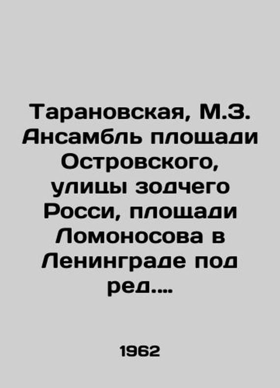 "Taranovskaya, M.Z. Ensemble of Ostrovsky Square, Architectural Rossi Street, Lomonosov Square in Leningrad, edited by I.I. Fomin and G.G. Grimm; designed by L.N. Lindrot; Academy of Construction and Architecture of the USSR. Leningrad branch; Architectural and Planning Department of the Leningrad City Executive Committee; State Inspectorate for Monument Protection./Taranovskaya, M.Z. Ansambl ploshchadi Ostrovskogo, ulitsy zodchego Rossi, ploshchadi Lomonosova v Leningrade pod red. I.I. Fomina i G.G. Grimma; oform. L.N. Lindrota; Akademiya stroitelstva i arkhitektury SSSR. Leningradskiy filia; Arkhitekturno-planirovochnoe upravlenie Lengorispolkoma; Gosudarstvennaya inspektsiya po okhrane pamyatnikov. Taranovskaya, M.Z. Ensemble of Ostrovsky Square, Architectural Rossi Street, Lomonosov Square in Leningrad, edited by I.I. Fomin and G.G. Grimm; designed by L.N. Lindrot; Academy of Construction and Architecture of the USSR. Leningrad branch; Architectural and Planning Department of the Leningrad City Executive Committee; State Inspectorate for Monument Protection. We have thousands of titles and often several copies of each title may be available. Please feel free to contact us for a detailed description of the copies available. SKUbd-41f9a5d73fb45626."