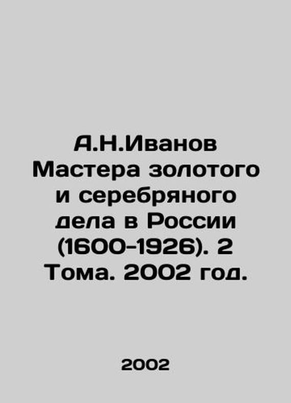 A.N.Ivanov Masters of Gold and Silver in Russia (1600-1926). 2 Volumes. 2002./A.N.Ivanov Mastera zolotogo i serebryanogo dela v Rossii (1600-1926). 2 Toma. 2002 god. Russian National Museum. Moscow. 2002. Guide for art experts. The publication was commissioned by the Russian National Museum. Duplicated in English. The book includes data on more than 5,000 stamps of masters of gold and silver in Russia. Graduation of firms, jewelers, and enterprises of gold and silver in the Russian Empire is offered. We have thousands of titles and often several copies of each title may be available. Please feel free to contact us for a detailed description of the copies available. SKUbd-42742c745fa19986.