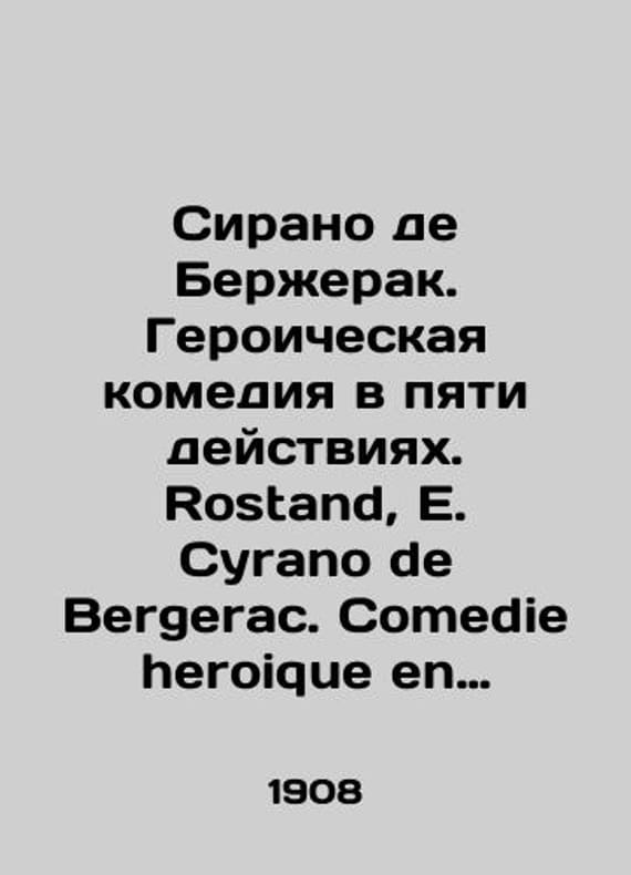 Cyrano de Bergerac. A heroic comedy in five acts. Rostand, E. Cyrano de Bergerac. Comedie heroique en cinq actes./Sirano de Berzherak. Geroicheskaya komediya v pyati deystviyakh. Rostand, E. Cyrano de Bergerac. Comedie heroique en cinq actes. Heroic comedy in five acts. Rostand, E. Cyrano de Bergerac. Comedie heroique en cinq actes. Paris: Charpentier & Fasquelle, 1908.We have thousands of titles and often several copies of each title may be available. Please feel free to contact us for a detailed description of the copies available. SKUbd-432637fed9d23af2.