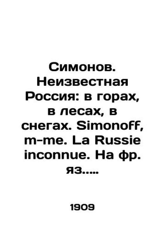 Simonoff. Unknown Russia: in the mountains, in the forests, in the snow. Simonoff, m-me. La Russie inconnue. Paris: Garnier freres, b/Simonov. Neizvestnaya Rossiya: v gorakh, v lesakh, v snegakh. Simonoff, m-me. La Russie inconnue. Na fr. yaz. Parizh: Garnier freres, b Simonoff. Unknown Russia: in the mountains, in the forests, in the snow. Simonoff, m-me. La Russie inconnue. Paris: Garnier freres, 4, 274 p., 28,4 - 19 sm.We have thousands of titles and often several copies of each title may be available. Please feel free to contact us for a detailed description of the copies available. SKUbd-4356fa0ee173508d.