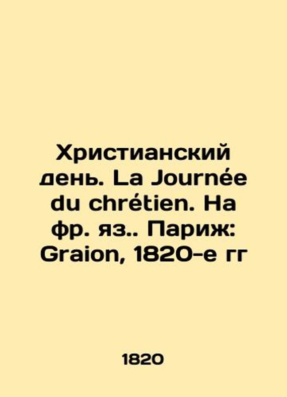 Christian Day. La Journee du chretien. Paris: Graion, 1820/Khristianskiy den. La Journee du chretien. Na fr. yaz. Parizh: Graion, 1820-e gg The Christian Day. La Journee du chretien. In French.. Paris: Graion, 1820s. 2, 482,.We have thousands of titles and often several copies of each title may be available. Please feel free to contact us for a detailed description of the copies available. SKUbd-43f1775a513de6.