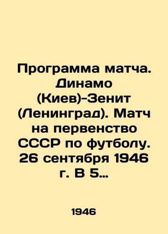 Match program. Dynamo (Kiev) - Zenit (Leningrad). Match for the USSR championship in football. September 26, 1946. At 5 p.m./Programma matcha. Dinamo (Kiev)-Zenit (Leningrad). Match na pervenstvo SSSR po futbolu. 26 sentyabrya 1946 g. V 5 chasov vechera. Match program. Dynamo (Kiev) - Zenit (Leningrad). Match for the USSR championship in football. September 26, 1946. At 5 p.m.We have thousands of titles and often several copies of each title may be available. Please feel free to contact us for a detailed description of the copies available. SKUbd-4426c5afe0e5d63f.