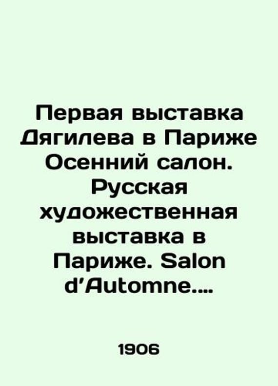 Diaghilevs First Paris Autumn Salon. Russian Art Exhibition in Paris. Salon dAutomne. Exposition de LArt russe/Pervaya vystavka Dyagileva v Parizhe Osenniy salon. Russkaya khudozhestvennaya vystavka v Parizhe. Salon dAutomne. Exposition de LArt russe. Na fr. yaz. Parizh, 19 Diaghilevs First Exhibition in Paris Autumn Salon. Russian Art Exhibition in Paris. Salon dAutomne. Exposition de LArt russe. In French, Paris, 1906. 140, 4 c.: 17.5 - 13 sm. We have thousands of titles and often several copies of each title may be available. Please feel free to contact us for a detailed description of the copies available. SKUbd-4547d16431bd7d34.