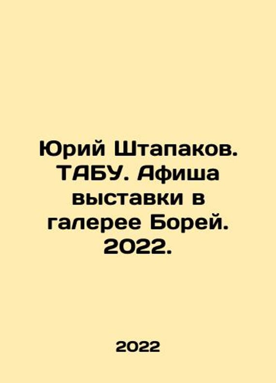 Yuri Stapakov. Tabu. Playbill of the exhibition at the Borei Gallery. 2022./Yuriy Shtapakov. TABU. Afisha vystavki v galeree Borey. 2022. Yuri Stapakov. Tabu. Playbill of the exhibition at the Borei Gallery. 2022. We have thousands of titles and often several copies of each title may be available. Please feel free to contact us for a detailed description of the copies available. SKUbd-45752a2a26610c02.