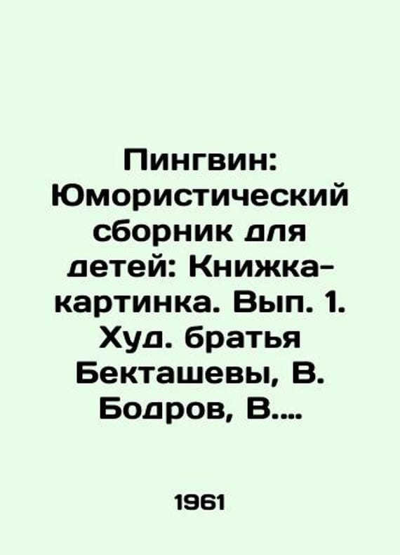 "Penguin: A Humorous Book for Children: A Picture Book. Issue 1. The Bektashev brothers, V. Bodrov, V. Gusev, N. Koshelkov, V. Markov, L. Moskovsky, F. Nelyubin, B. Starodubtsev, Yu. Trunev./Pingvin: Yumoristicheskiy sbornik dlya detey: Knizhka-kartinka. Vyp. 1. Khud. bratya Bektashevy, V. Bodrov, V. Gusev, N. Koshelkov, V. Markov, L. Moskovskiy, F. Nelyubin, B. Starodubtsev, Yu. Trunev. Penguin: A Humorous Book for Children: A Picture Book. Issue 1. The Bektashev brothers, V. Bodrov, V. Gusev, N. Koshelkov, V. Markov, L. Moskovsky, F. Nelyubin, B. Starodubtsev, Yu. Trunev. L.: Detgiz, 1961-27, 1 p.: il.;. We have thousands of titles and often several copies of each title may be available. Please feel free to contact us for a detailed description of the copies available. The delivery of this book might be delayed beyond the usual timeframe due to extended processing and preparation before shipment, and faster shipping options are not offered. Please inform us if you need the order by a certain date or have a deadline.SKUbd-45ee9e2b1fc9dfba"