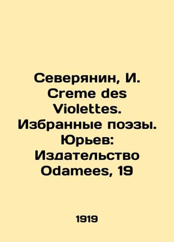 Northerner, I. Creme des Violettes. Selected poems. Yuryev: Publishing House Odamees, 19/Severyanin, I. Creme des Violettes. Izbrannye poezy. Yurev: Izdatelstvo Odamees, 19 Severyanin, I. Creme des Violettes. Selected poems. Yuryev: Odamees Publishing House, 1919. 3-124We have thousands of titles and often several copies of each title may be available. Please feel free to contact us for a detailed description of the copies available. SKUbd-4670d538fdebe46.