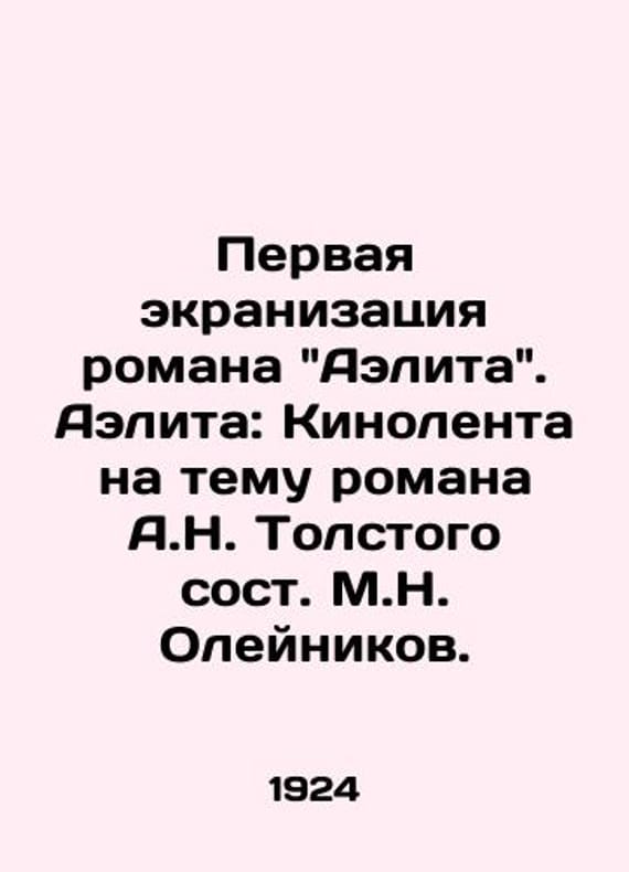 First screen adaptation of the novel Aelita. Aelita: A film based on the novel by A.N. Tolstoy composed by M.N. Oleynikov./Pervaya ekranizatsiya romana Aelita. Aelita: Kinolenta na temu romana A.N. Tolstogo sost. M.N. Oleynikov. First screen adaptation of the novel Aelita. Aelita: A film based on the novel by A.N. Tolstoy composed by M.N. Oleynikov.We have thousands of titles and often several copies of each title may be available. Please feel free to contact us for a detailed description of the copies available. SKUbd-46f11789a9b196d6.