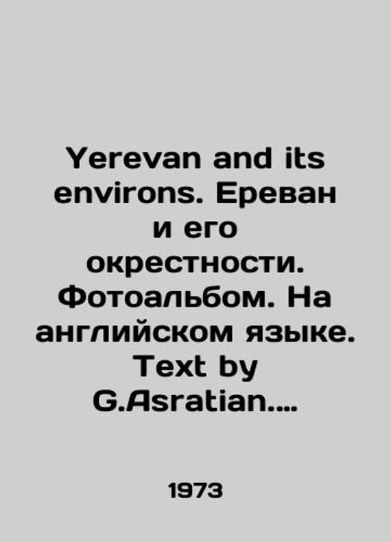Yerevan and its surroundings. Yerevan and its environs. Photo album. In English. Text by G.Asratian. Photos by R.Mazelev./Yerevan and its environs. Erevan i ego okrestnosti. Fotoalbom.Na angliyskom yazyke. Text by G.Asratian. Photographs by R.Mazelev. Leningrad Aurora 1973, 136 We have thousands of titles and often several copies of each title may be available. Please feel free to contact us for a detailed description of the copies available. SKUbd-477fb45a8f858edb.