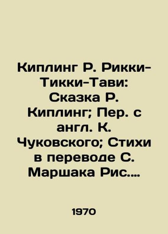 "Kipling R. Rickey-Tikki-Tavi: The Tale of R. Kipling; Translated from English by K. Chukovsky; Poems Translated by S. Marshak by V. Kurlov. Leningrad: The Artist of the RSFSR, 1970. 27, 3 p./Kipling R. Rikki-Tikki-Tavi: Skazka R. Kipling; Per. s angl. K. Chukovskogo; Stikhi v perevode S. Marshaka Ris. V. Kurlova. Leningrad: Khudozhnik RSFSR, 1970. 27, 3 s. (Illustration-V.Kurdov) Kipling R. Rickey-Tikki-Tavi: The Tale of R. Kipling; Translated from English by K. Chukovsky; Verses translated by S. Marshak Ric. V. Kurlov. Leningrad: The Artist of the RSFSR, 1970. We have thousands of titles and often several copies of each title may be available. Please feel free to contact us for a detailed description of the copies available. SKUbd-499ec5c39a1cf678."
