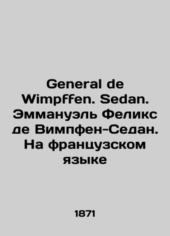 General de Wimpffen. Sedan. Emmanuel Felix de Wimpfen-Sedan. In French/General de Wimpffen. Sedan. Emmanuel Feliks de Vimpfen-Sedan. Na frantsuzskom yazyke Paris Librairie Internationale, 1871, 382c.We have thousands of titles and often several copies of each title may be available. Please feel free to contact us for a detailed description of the copies available. SKUbd-4b3dfaaa55572afc.